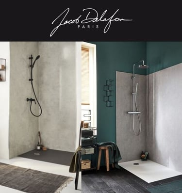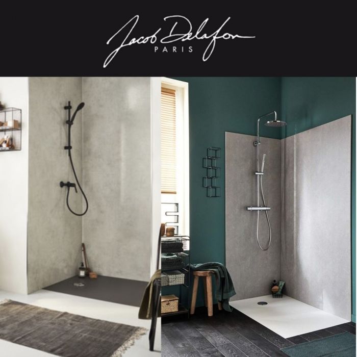 Les fournitures viennent des marques : Jacob Delafon, Grohe, Leroy Merlin.