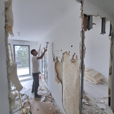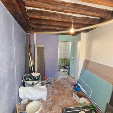 Démolition, Ouverture mur, Plâtrerie, Isolation, Peinture, Carrelage, Plomberie, Electricité
