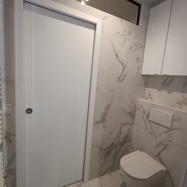 Rénovation complète d'un appartement 2 pièces 65m2 avec pose de carrelage effet marbre.